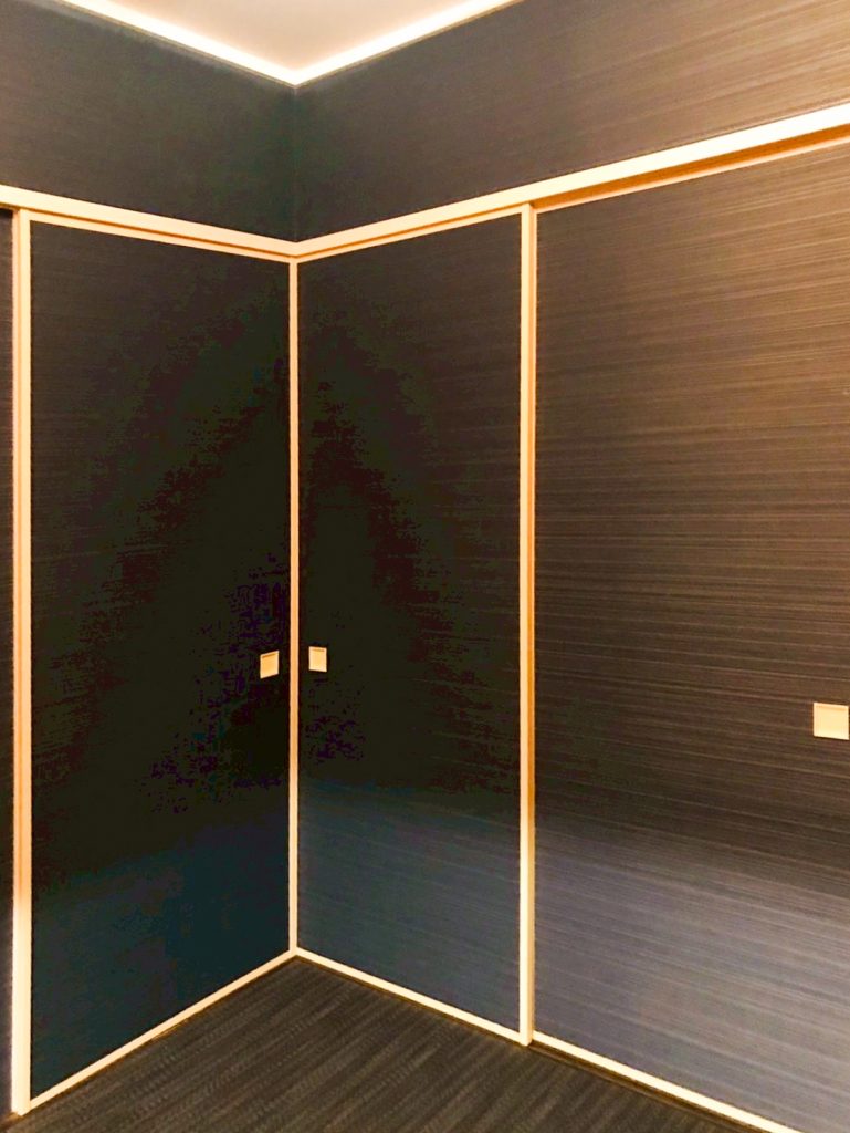 壁紙にインクジェット印刷ができる事をご提案し、周りのクロスはそれに合う暗めの色を合わせました。